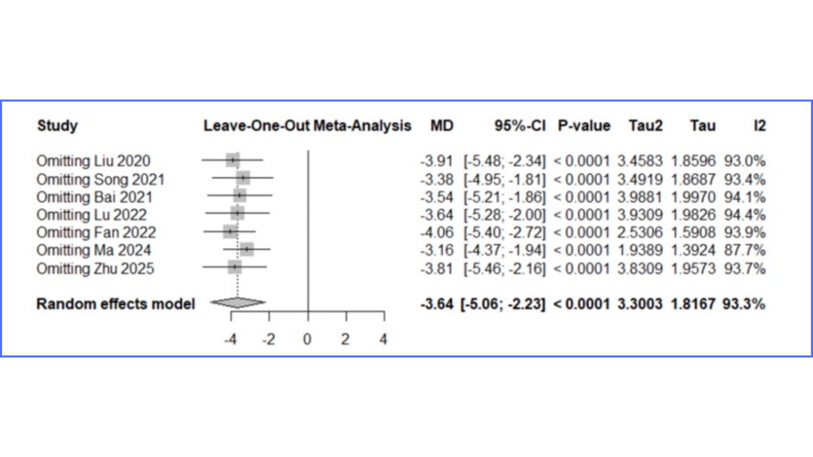 Un aspecto metodológico valioso es el análisis de sensibilidad. Aquí se aplica la estrategia de exclusión secuencial (leave-one-out): se repite el metanálisis quitando uno a uno cada estudio para comprobar si alguno “sostiene” el resultado por sí mismo. En esta revisión, las estimaciones puntuales para HAMA, SAS, HAMD y SDS permanecen dentro de los intervalos de confianza del análisis principal tras cada exclusión y no cambian la conclusión. Dicho de otro modo: el efecto favorable a la acupuntura no depende de un ensayo aislado, sino que se mantiene estable ante perturbaciones razonables del conjunto de datos. Este tipo de análisis no elimina la heterogeneidad, pero aumenta la confianza en la solidez del hallazgo agregado.